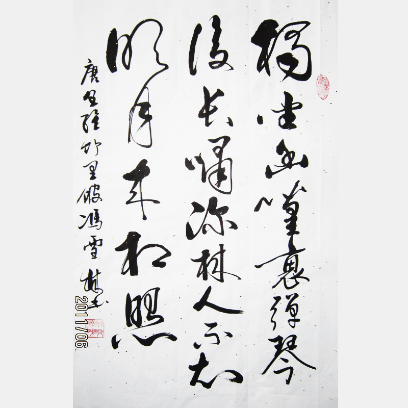 備注:2010年6月,該作品在中國首屆“廬山杯”文學藝術大獎賽中榮獲一等獎。2011年11月,馮雪林行書《王維·竹里館》在錦繡金陵——首屆當代書畫南京拍賣會拍賣底價為4000元。