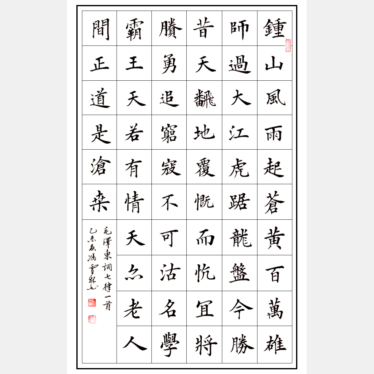 字畫亮點:毛主席著名七律詩、紅色詩詞、常見的公務員辦公室字畫之一、必勝信念