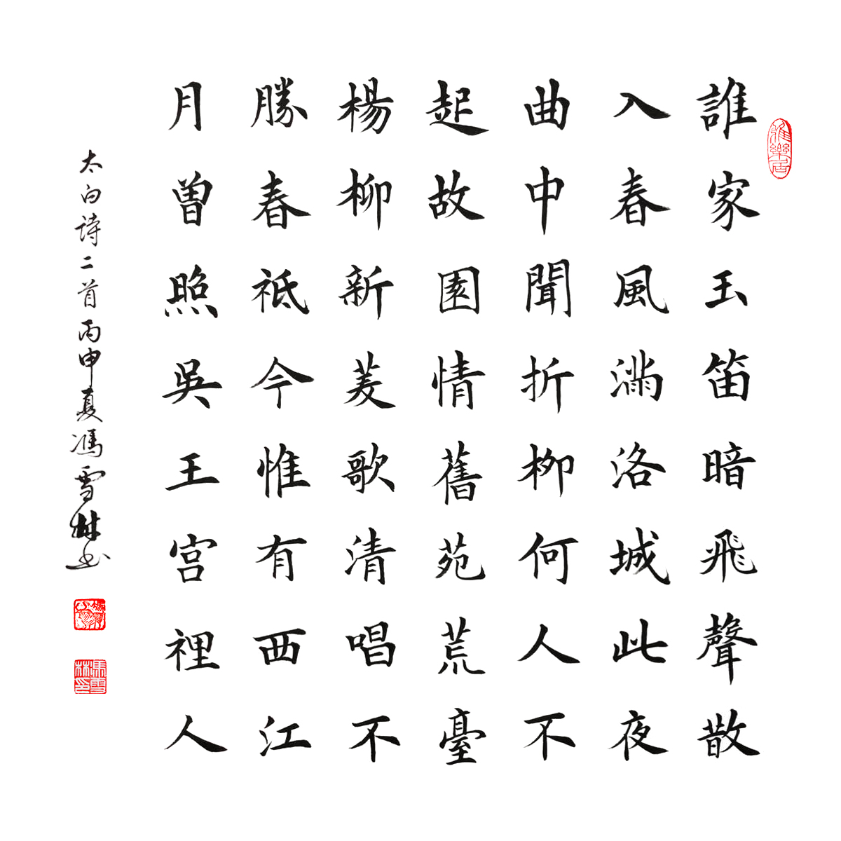 字畫關聯:李白《將進酒》楷書、 李白《將進酒》行書、 李白《靜夜思》行書、 李白《客中行》、 李白《陪族叔刑部侍郎曄及中書賈舍人至游洞庭五首》其一、 李白《春夜洛城聞笛》《蘇臺覽古》