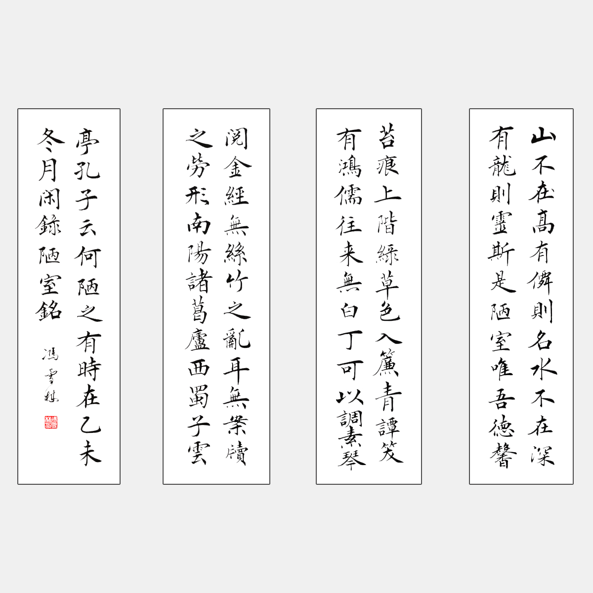 關聯字畫: 劉禹錫《陋室銘》楷書橫幅、 劉禹錫《陋室銘》隸書、 劉禹錫《陋室銘》行書、 劉禹錫《浪淘沙九首·其八》莫道讒言如浪深、 劉禹錫《浪淘沙九首·其一》九曲黃河萬里沙