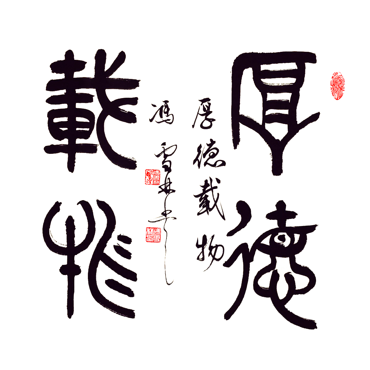 內容延伸:《天行健,君子以自強不息。地勢坤,君子以厚德載物。》、《上善若水,厚德載物。》、《厚德載物,雅量容人》、《自強不息,厚德載物》