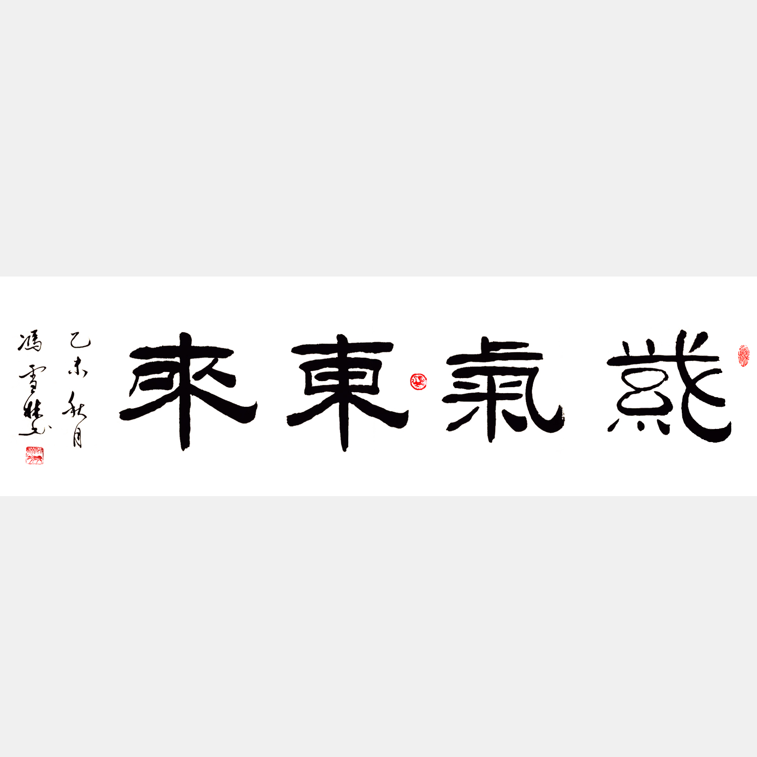 字畫關聯:紫氣東來行書、紫氣東來隸書、紫氣東來楷書 、《東來紫氣,海蓄祥云。》楷書
