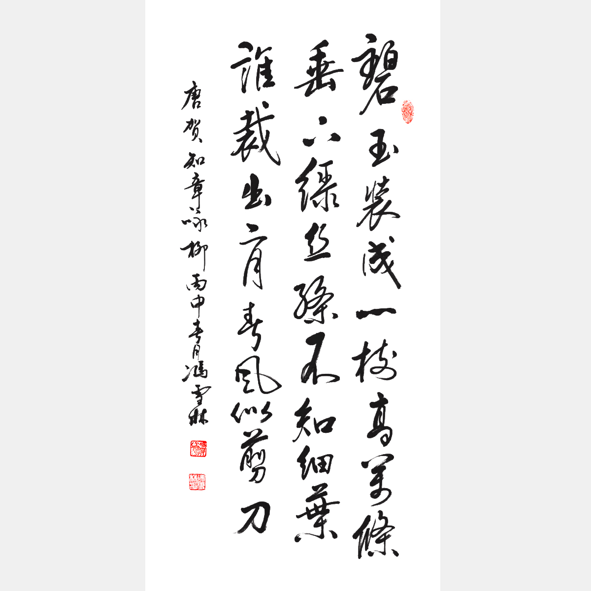 字畫內容:唐朝賀知章七言絕句《詠柳》