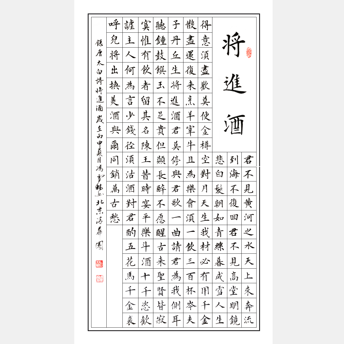 字畫內(nèi)容:李白樂府詩《將進酒》