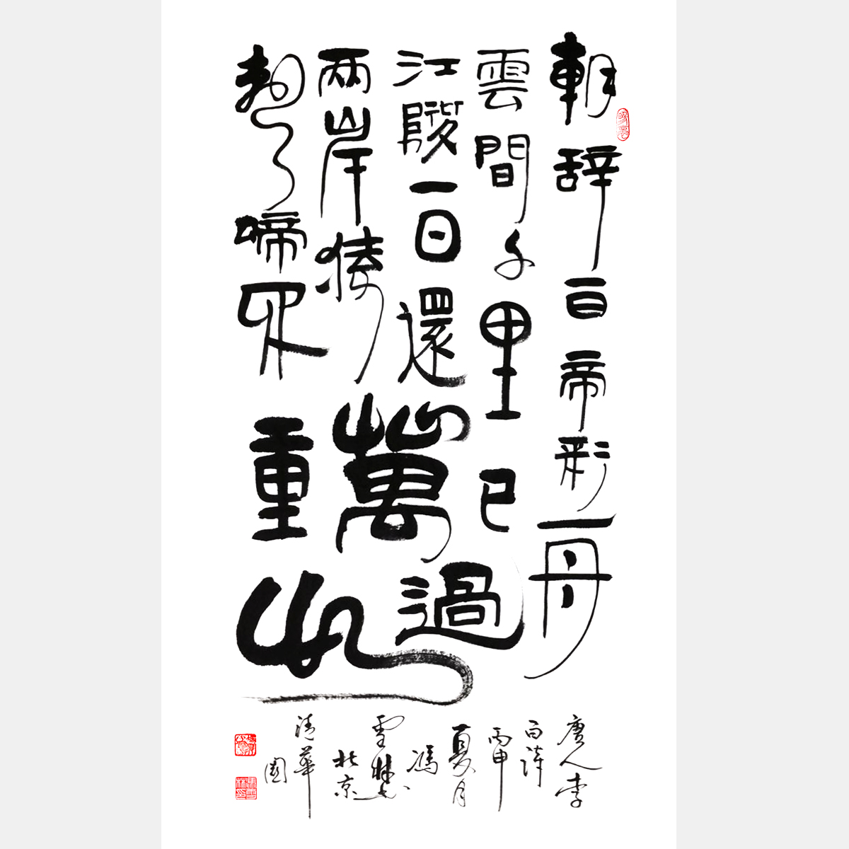 內容解釋:《早發白帝城》是唐代偉大詩人李白在流放途中遇赦返回時所創作的一首七絕,是李白詩作中流傳最廣的名篇之一。唐肅宗乾元二年(759),詩人流放夜郎,行至白帝遇赦,乘舟東還江陵時而作此詩。詩意在描摹自白帝至江陵一段長江,水急流速,舟行若飛的情況。首句寫白帝城之高;二句寫江陵路遙,舟行迅速;三句以山影猿聲烘托行舟飛進;四句寫行舟輕如無物,點明水勢如瀉。詩人是把遇赦后愉快的心情和江山的壯麗多姿、順水行舟的流暢輕快融為一體來表達的。全詩無不夸張和奇想,寫得流麗飄逸,驚世駭俗,但又不假雕琢,隨心所欲,自然天成。明人楊慎贊曰:“驚風雨而泣鬼神矣!”