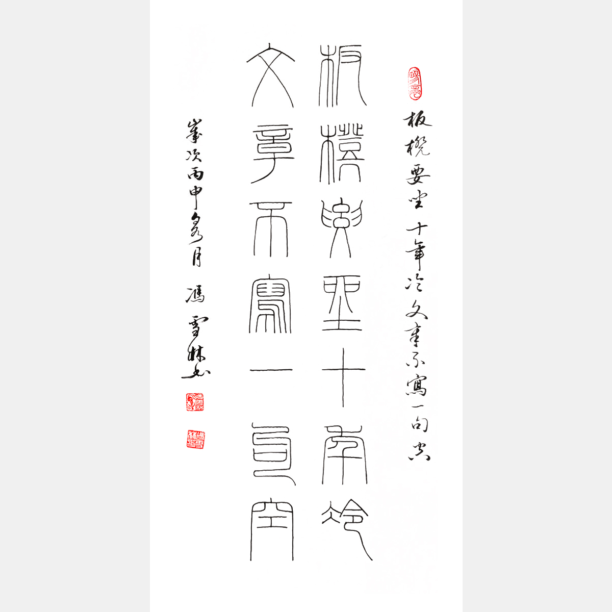 字畫內(nèi)容:板凳要坐十年冷,文章不寫一句空。