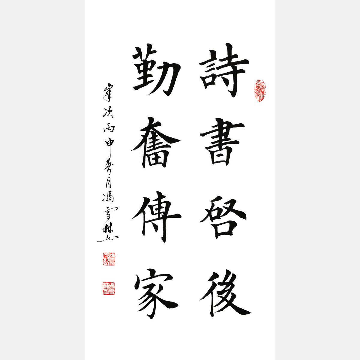 內容解釋:啟后,意思是為后人開辟道路。傳家,傳家事于子孫。“詩書啟后,勤奮傳家”意思是用文化知識為后人開辟道路,把勤奮的寶貴精神品德、家風傳給后世子孫。“詩書啟后,勤奮傳家”上聯為“淡泊明志,寧靜致遠。”出自田英章書法聯。