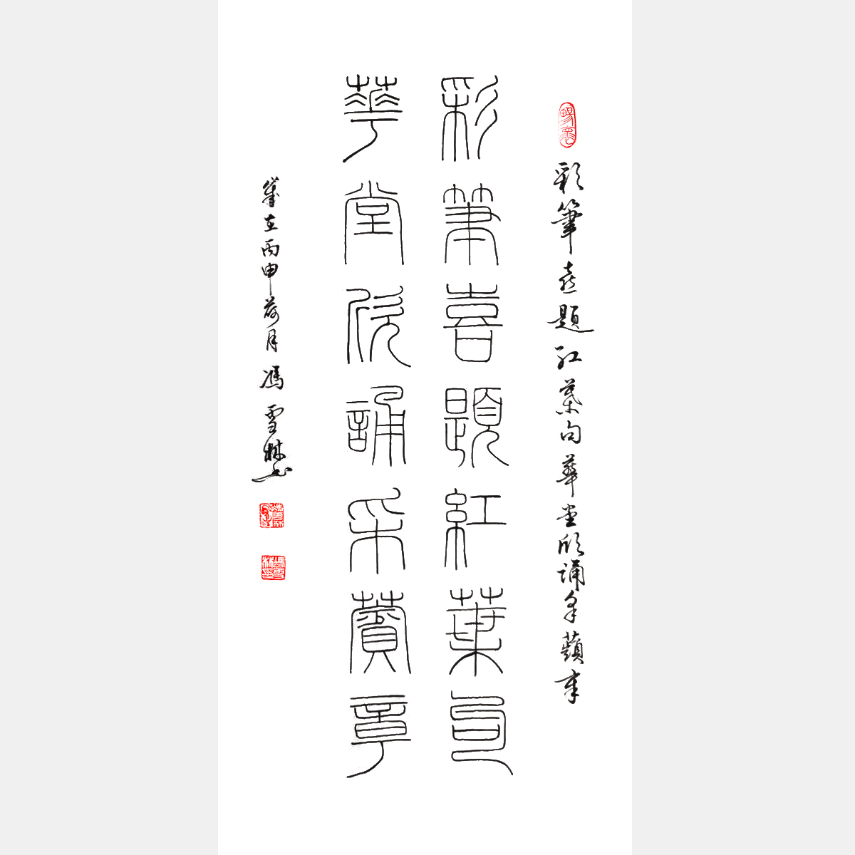 字畫內容:彩筆喜題紅葉句,華堂欣誦采蘋章。
