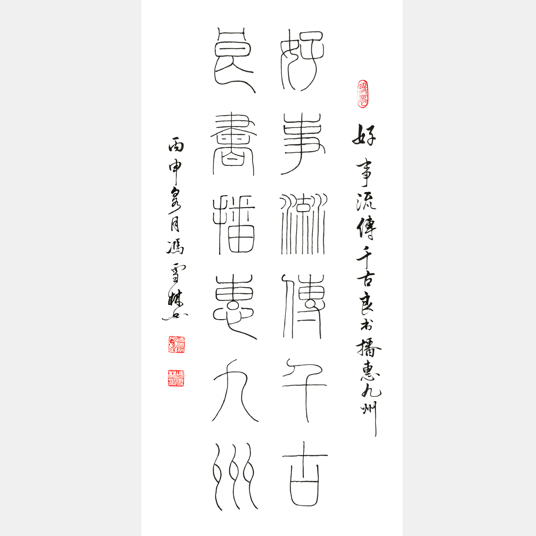 字畫內容:好事流傳千古,良書播惠九州。