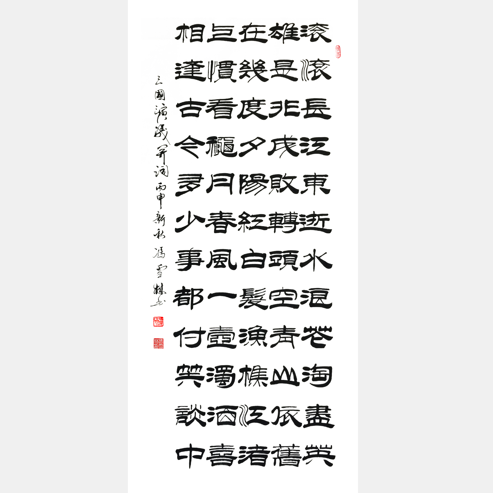 字畫內(nèi)容:三國演義開篇詞、楊慎《臨江仙·滾滾長江東逝水》