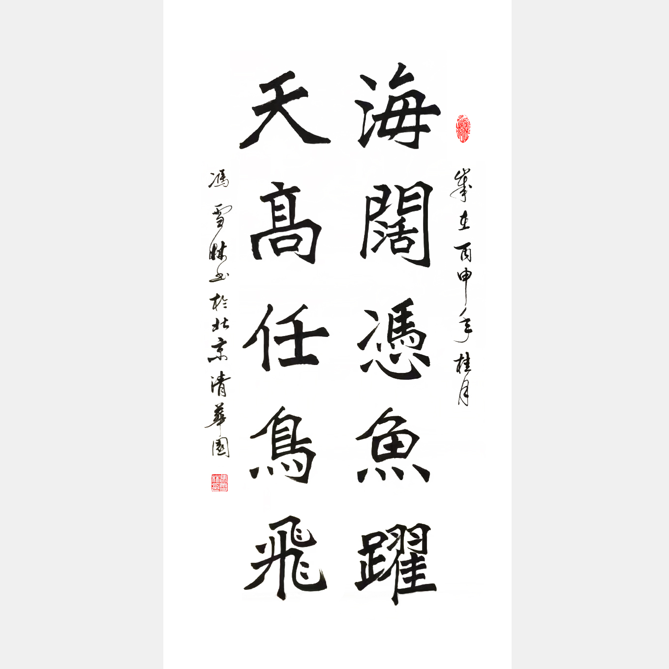 字畫內(nèi)容:海闊憑魚躍,天高任鳥飛。
