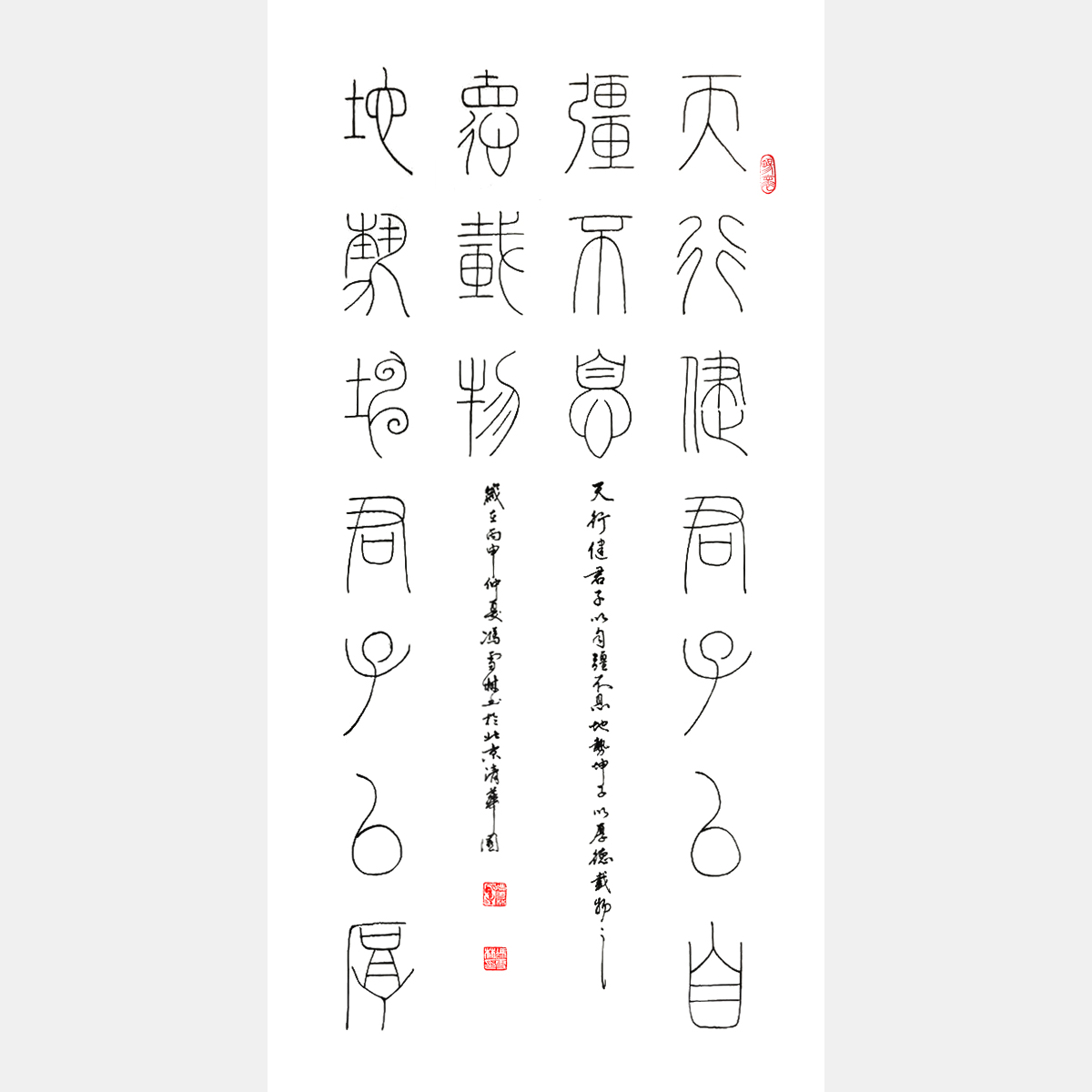 字畫內容:《周易》天行健,君子以自強不息。地勢坤,君子以厚德載物。
