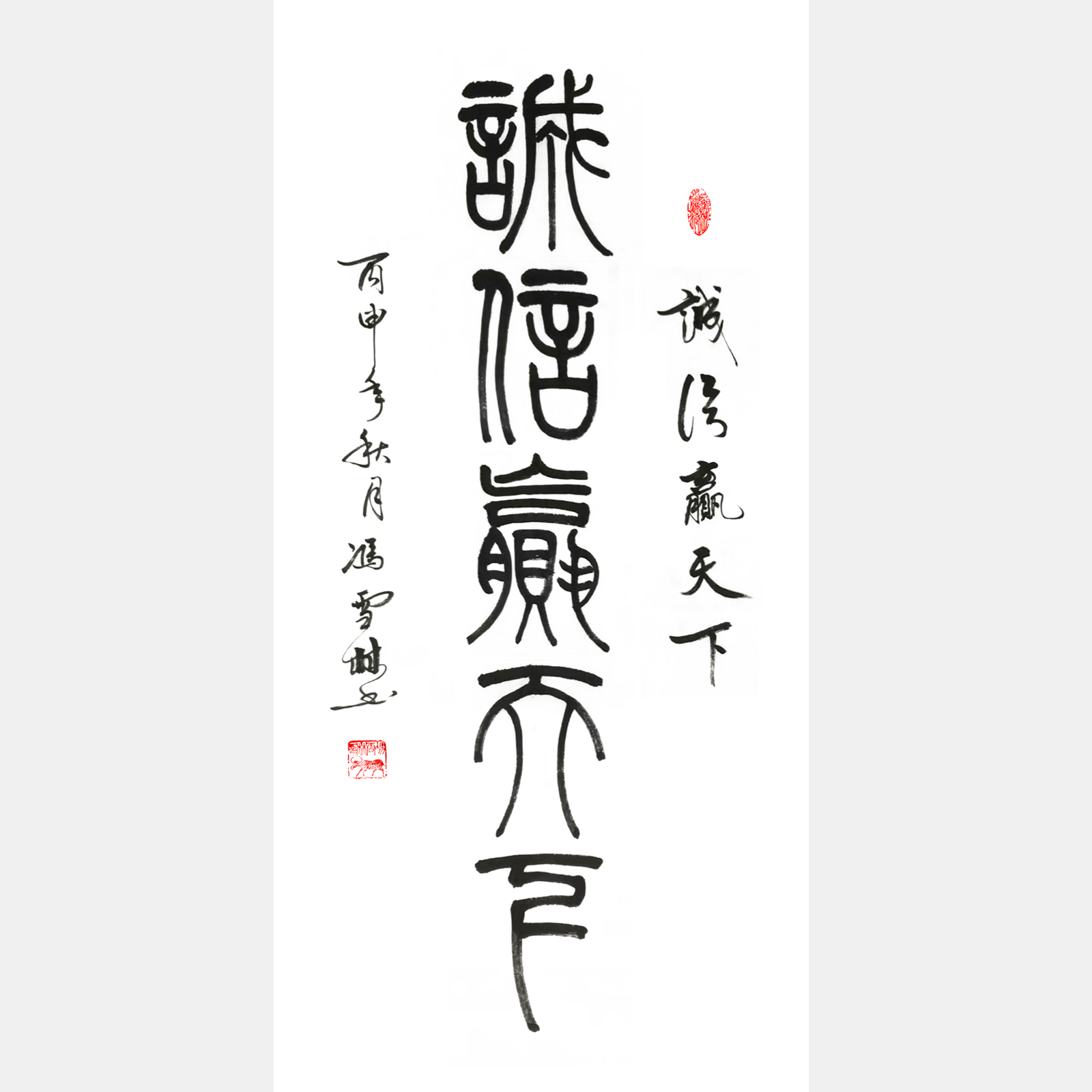 關聯字畫:誠信贏天下行書書法作品 、 誠信贏天下隸書圖片 、 仁義禮智信溫良恭儉讓書法圖片、 誠信務實書法 、 神靈佑誠書法、 謙和樸誠書法作品 、 大醫精誠書法作品 、 駿業騰飛,誠勤為寶。 天道酬勤,人道酬善,商道酬誠,業道酬精。 以和為貴 以誠為本。 做事以信譽為本,待人以誠實為先。 天道酬勤,地道酬善,人道酬誠,商道酬信,業道酬精,家道酬愛。