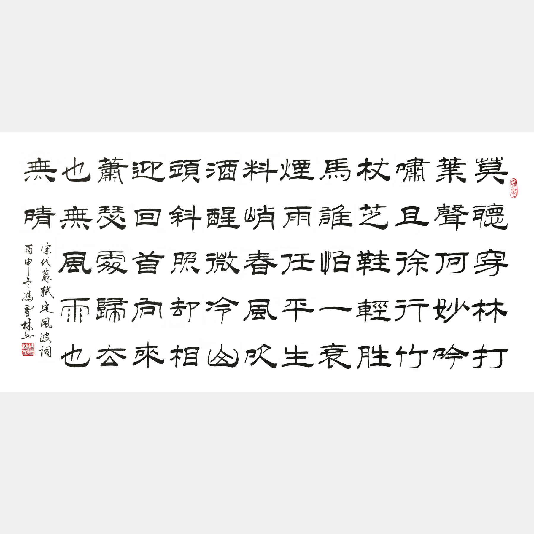 關聯字畫:蘇軾定風波行書書法作品 、蘇軾《水調歌頭·明月幾時有》行書 、蘇軾《念奴嬌·赤壁懷古》行書 、 蘇軾《念奴嬌·赤壁懷古》隸書 、 辛棄疾《青玉案·元夕》隸書書法作品 、 辛棄疾《漁家傲·秋思》隸書書法作品