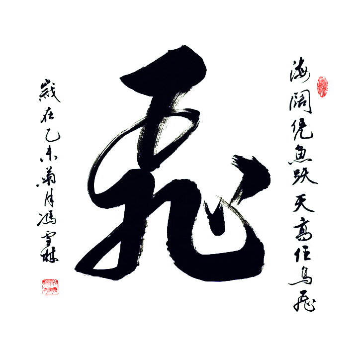 字畫內容:飛——海闊憑魚躍,天高任鳥飛。