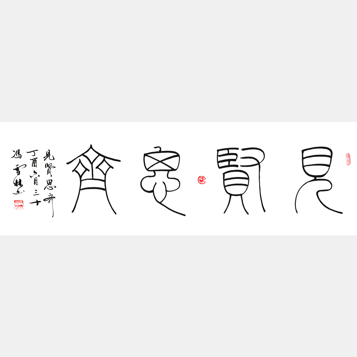 內(nèi)容解釋:見賢思齊,意思是指見到有才德的人就想著與他齊平。語出自,《論語·里仁》:“子曰:‘見賢思齊焉,見不賢而內(nèi)自省也。’” 孔穎達(dá)疏:“見彼賢則思與之齊等?!?唐駱賓王《靈泉頌》:“見賢思齊,仰圭璋而有地;揮毫興頌,鏤琬琰之無慙?!?