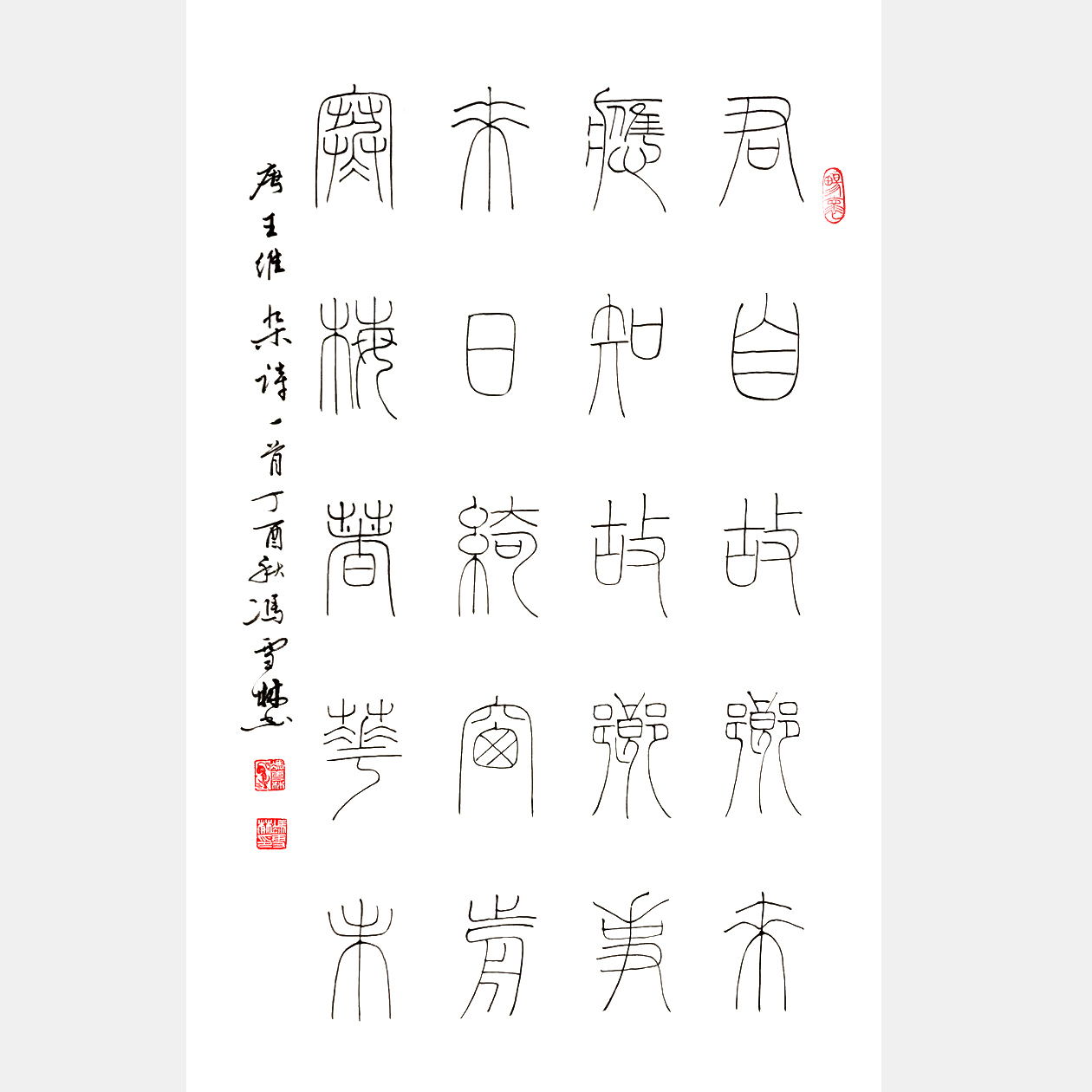字畫亮點:鐵線篆為小篆書體之一,此篆書用筆圓活,細硬似鐵,劃一首尾如線,后世稱唐李陽冰為鐵線篆首創者。 鐵線篆作品在當今書畫市場上極為稀缺珍貴。