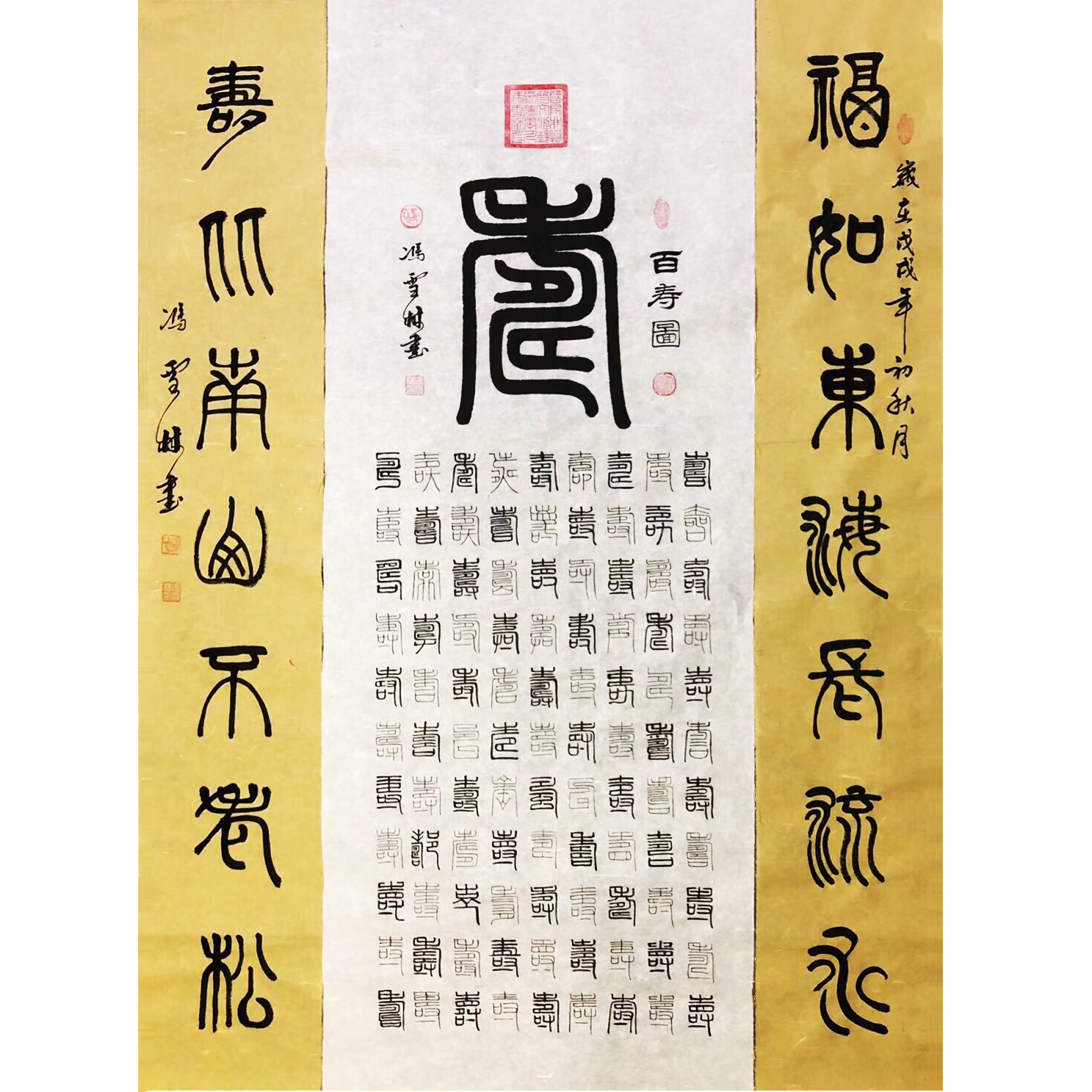 字畫內容:百壽圖(由中華文化里100個不同寫法的“壽”字書寫而成)。福如東海長流水,壽比南山不老松。(“篆書”版)