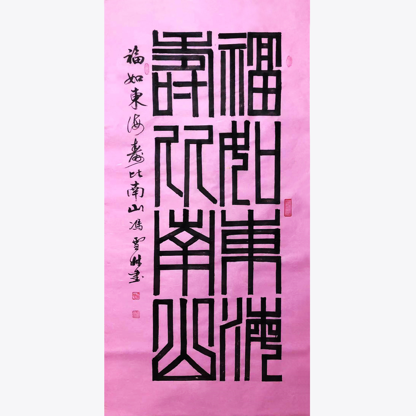字畫關聯:福如東海長流,壽比南山不老松。 、 五福生輝 、福蘊華堂 、 百福圖 、 百壽圖(“篆書+行書”版) 、 百壽圖(“篆書+隸書”版) 、 百壽圖(“篆書”版)