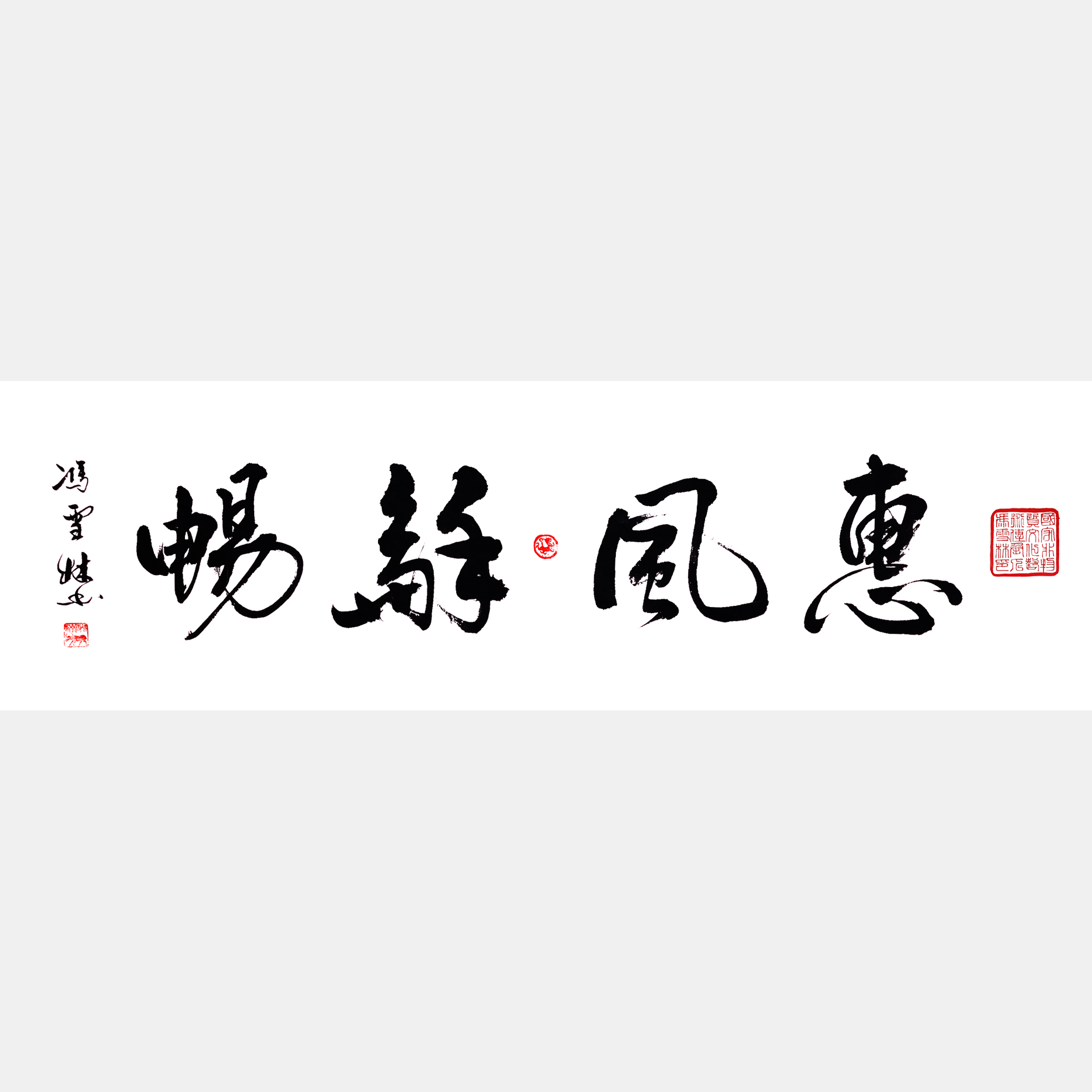 內容解釋:惠,微風的意思。惠風和暢,是指柔和的風,使人感到溫暖、舒適。語出自東晉著名書法家王羲之《蘭亭集序》,“是日也,天朗氣清,惠風和暢。仰觀宇宙之大,俯察品類之盛,所以游目騁懷,足以極視聽之娛,信可樂也?!?