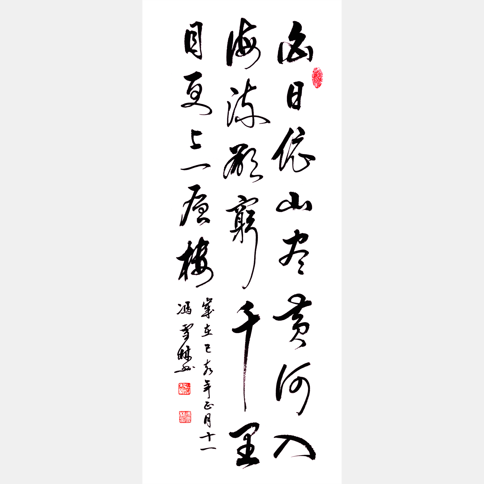 白話譯文:夕陽依傍著西山慢慢地沉沒,滔滔黃河朝著東海洶涌奔流。若想把千里的風光景物看夠,那就要登上更高的一層城樓。