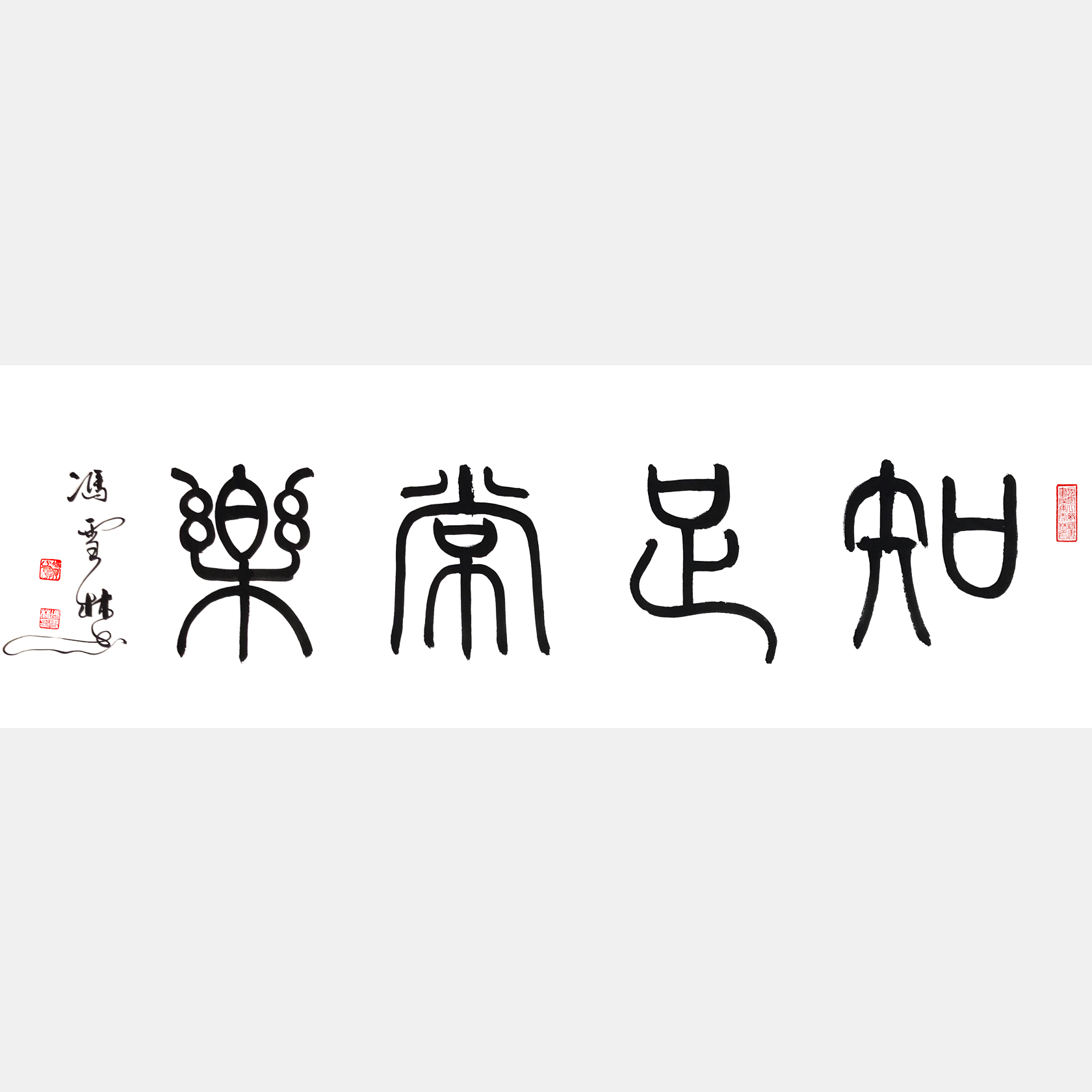 字畫內容:知足常樂;印章內容——國家非物質文化遺產傳承人馮雪林印。