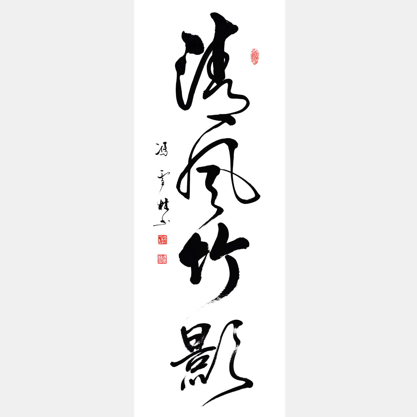 內容解釋:清風竹影,意思是月色籠罩,清風習習,竹子婆娑起舞,瀟灑多姿的竹影更顯得秀麗文雅,意境優美、頗有趣味。有名句“竹影拂階塵不起,清風穿池水無聲。”意思是,斑駁竹影微微搖曳,似在拂拭階上的塵泥,但是竹影本是虛幻之象,故無法將塵泥拂拭而去;清風陣陣穿過池塘,水面泛起微瀾,卻聽不到聲音。