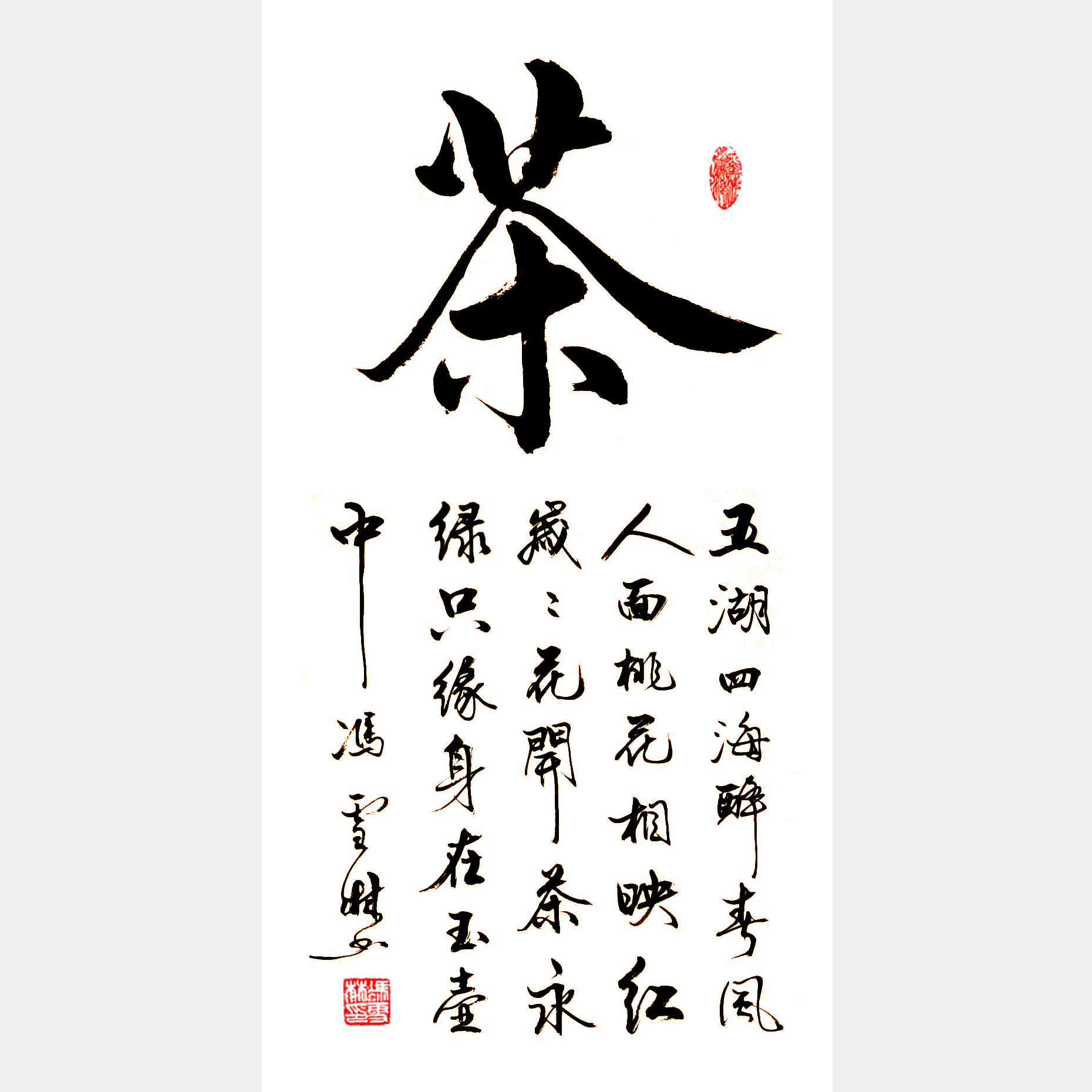 茶——五湖四海醉春風(fēng),人面桃花相映紅。歲歲花開(kāi)茶永綠,只緣身在玉壺中。書(shū)法作品欣賞