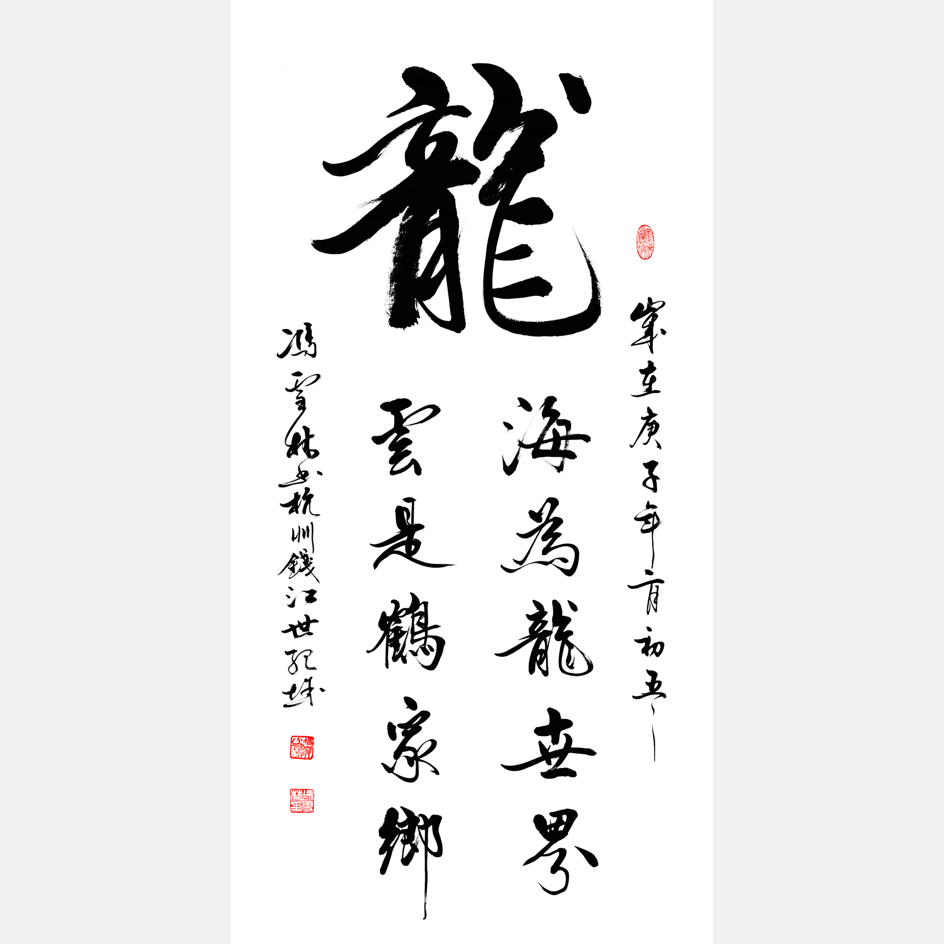 字畫內容:龍。海為龍世界,云是鶴家鄉。(龍字書法作品)