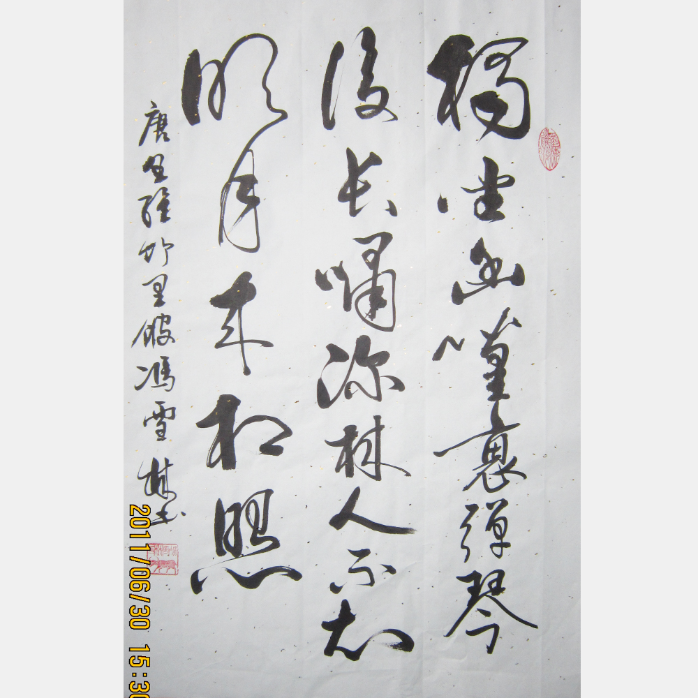 備注:2010年6月,該作品在中國首屆“廬山杯”文學藝術大獎賽中榮獲一等獎。2011年11月,馮雪林行書《王維·竹里館》在錦繡金陵——首屆當代書畫南京拍賣會拍賣底價為4000元。