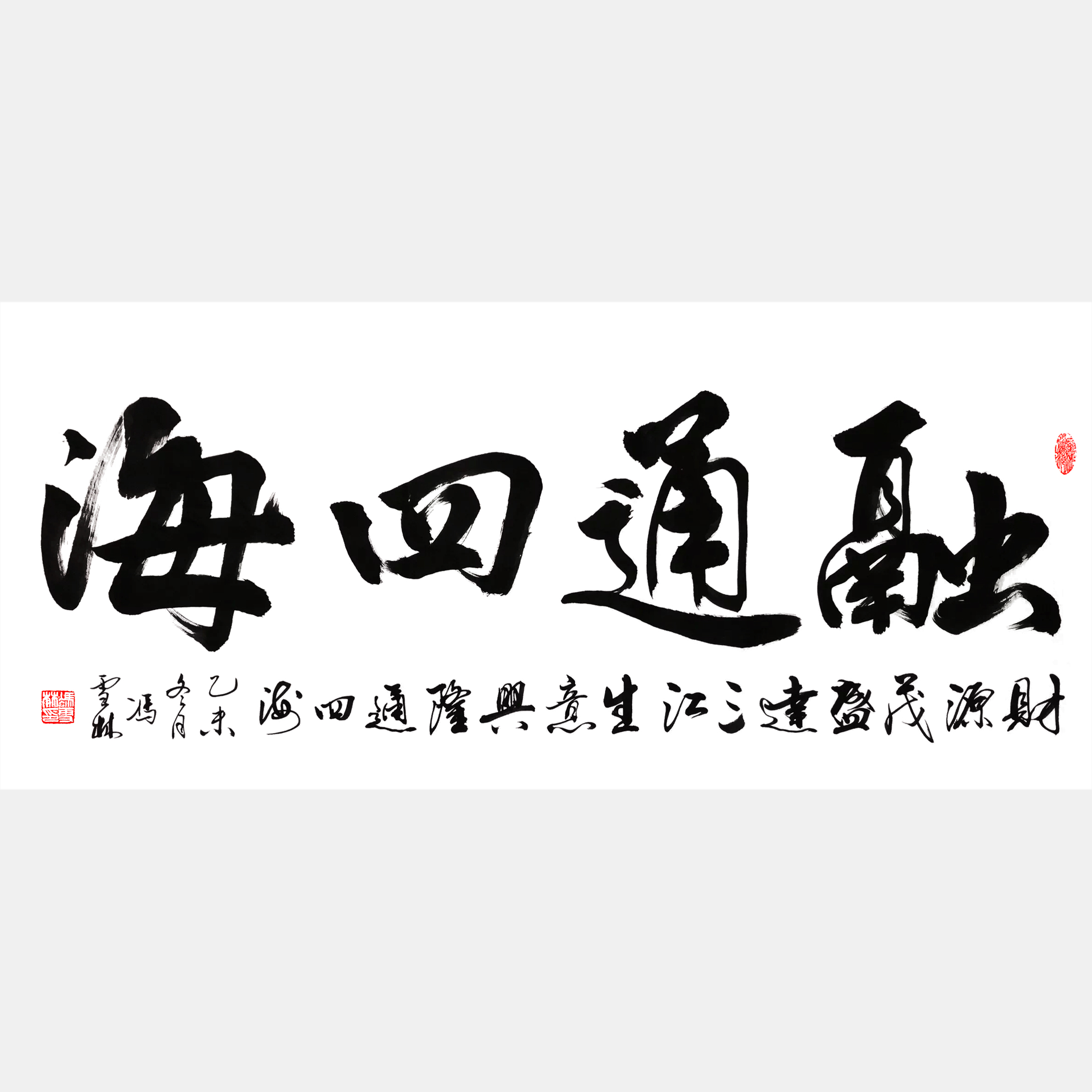 書法內容:融通四海——生意興隆通四海,財源茂盛達三江。