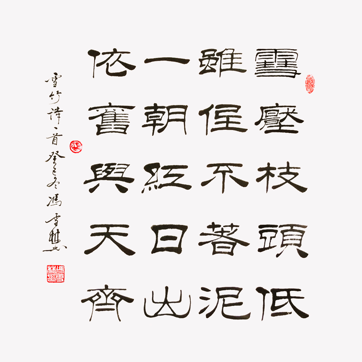 內容解釋:本詩文字平易,不用典故,純以白話寫出,但卻有一番自信和帝王氣度,這也是詩為心聲的一個典型例子。竹子作為清白淡雅、高風亮節的象征,一直深受古人喜愛。古有“寧可食無肉,不可居無竹”,朱元璋此詩采用欲揚先抑的手法,把能夠與天齊的竹子先遭雪壓之勢再因紅日出現而再度自立的一派自信與雄心壯志寫的淋漓盡致。
