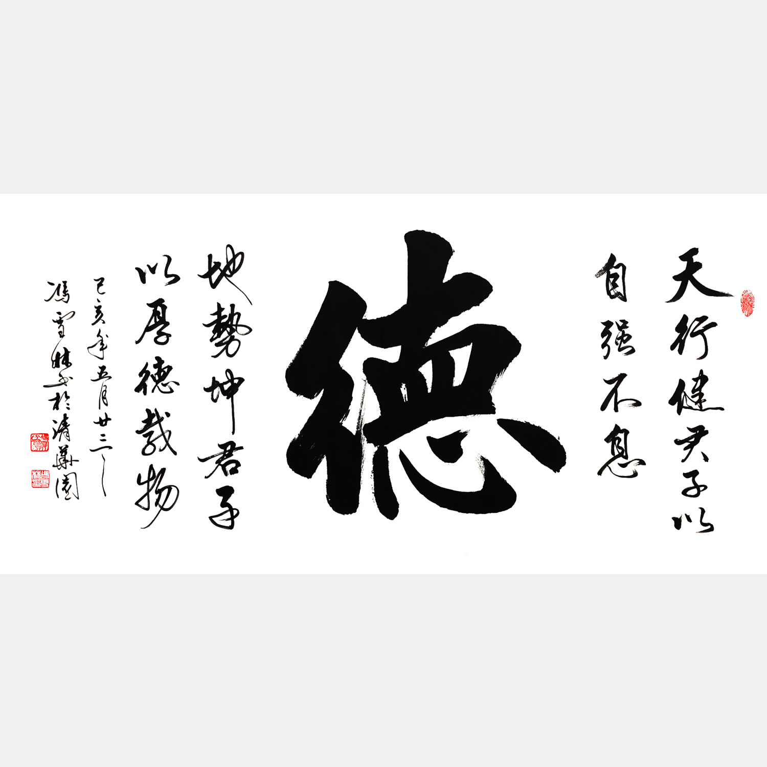 字畫內容:德——天行健,君子以自強不息;地勢坤,君子以厚德載物。