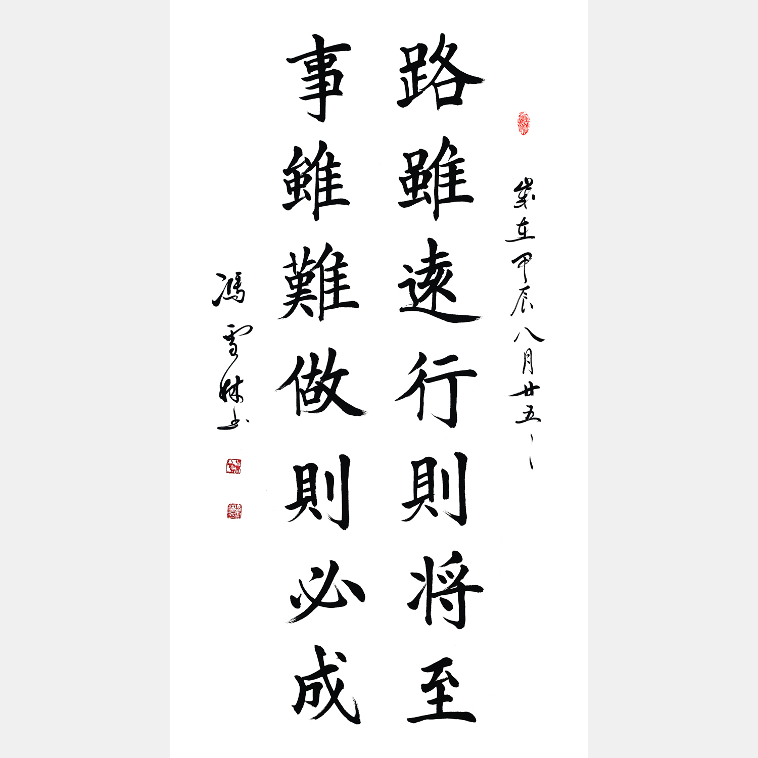書法內容:路雖遠行則將至,事雖難做則必成。