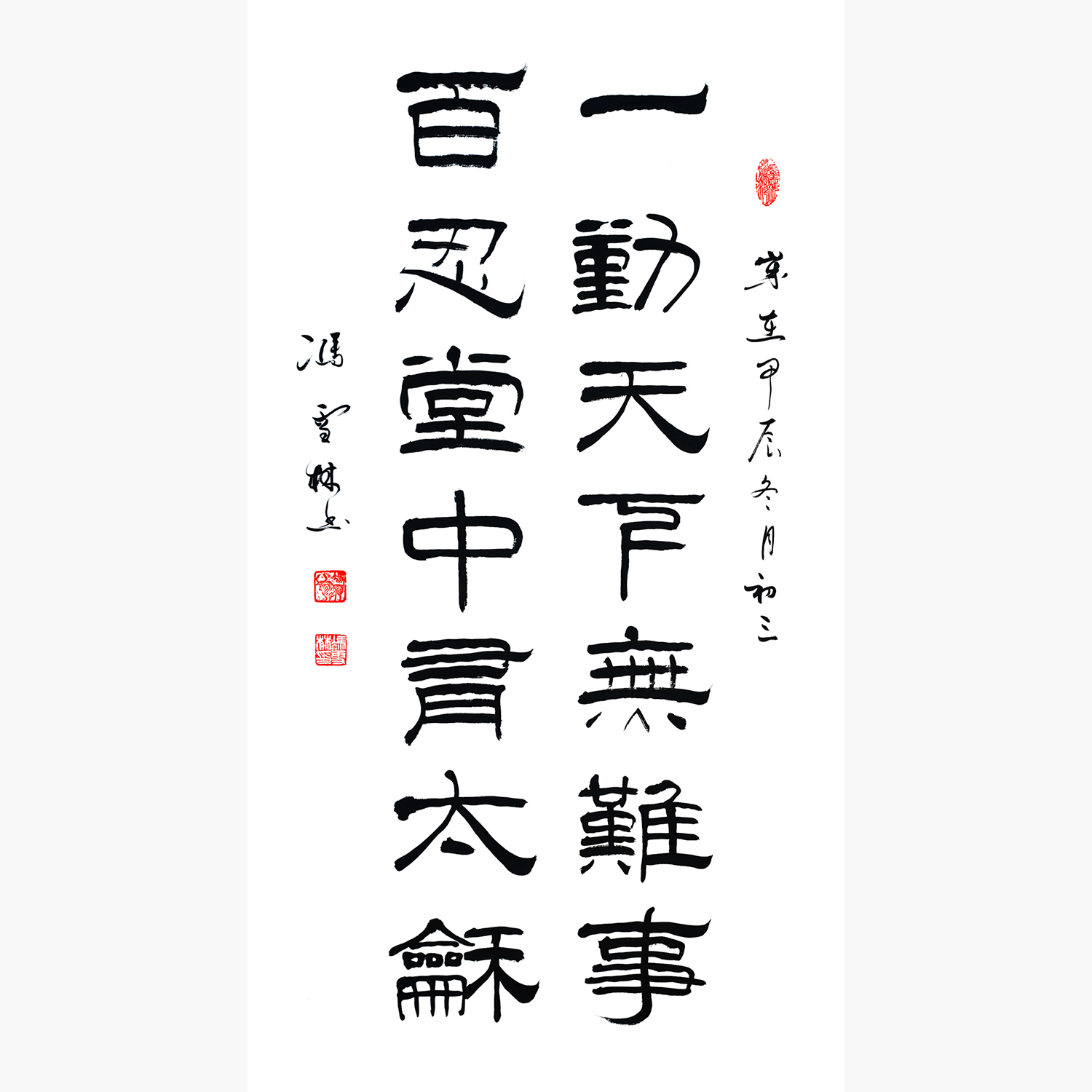 書法內容:一勤天下無難事,百忍堂中有太和。