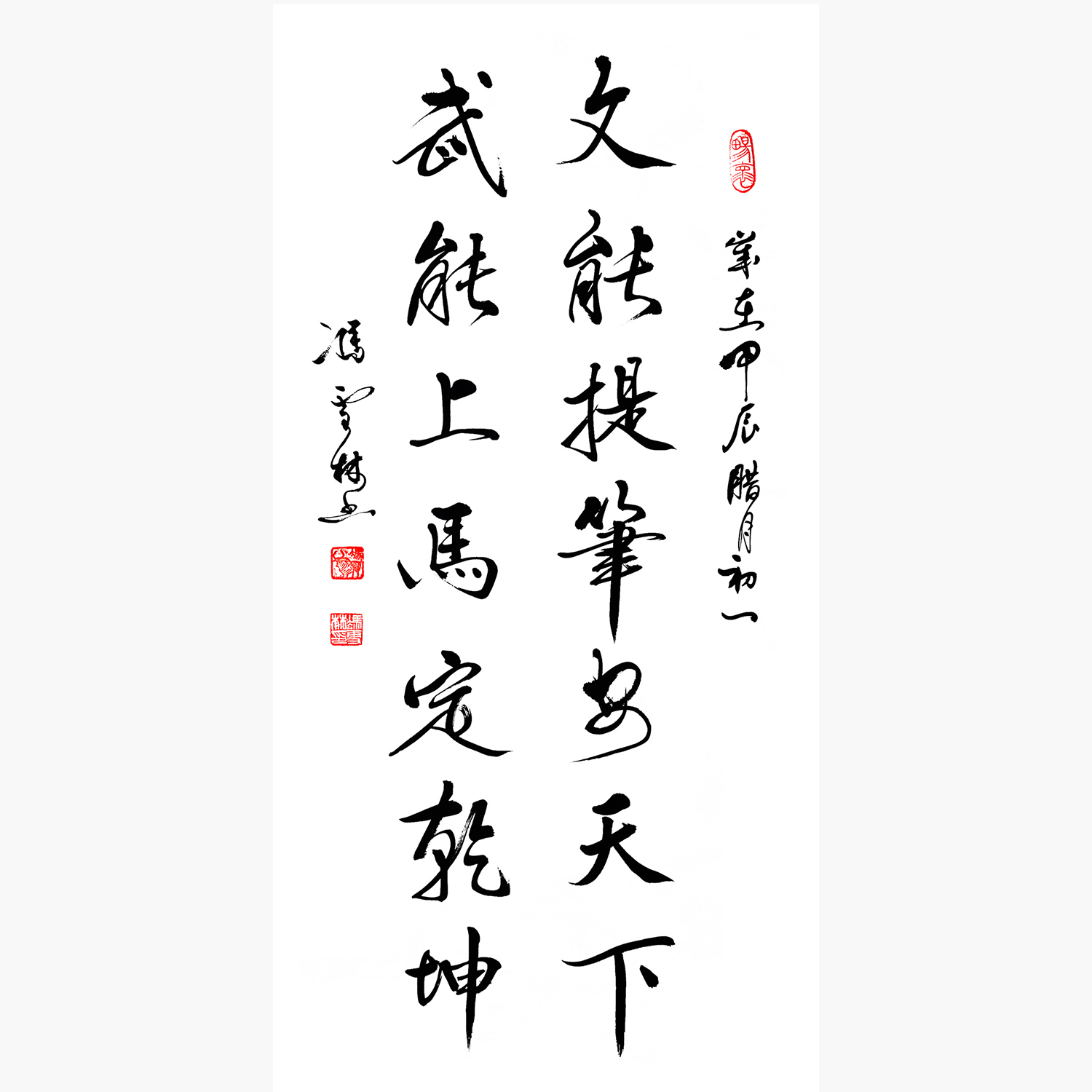 書法內(nèi)容:文能提筆安天下,武能上馬定乾坤行。