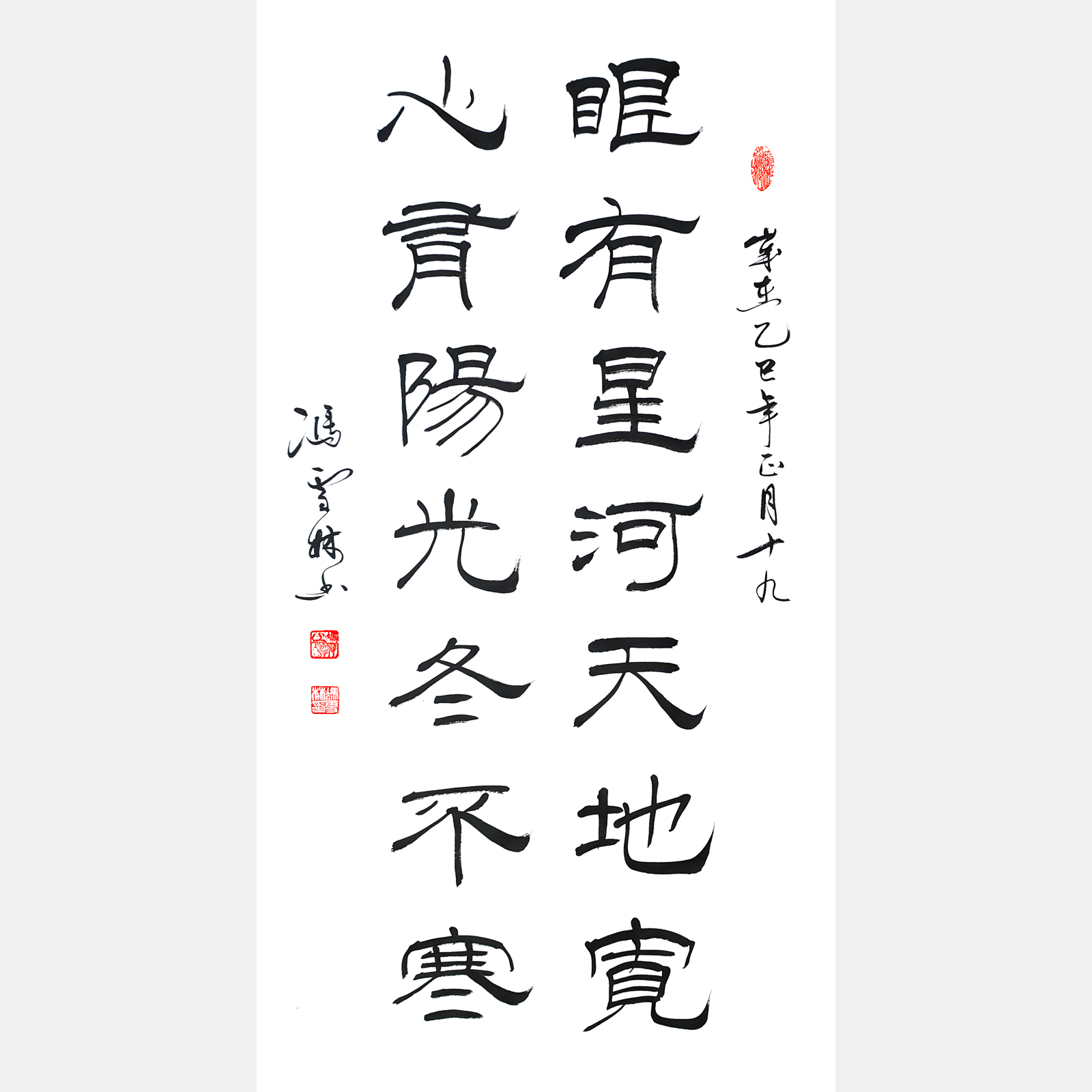 書法內容:眼有星河天地寬,心有陽光冬不寒。