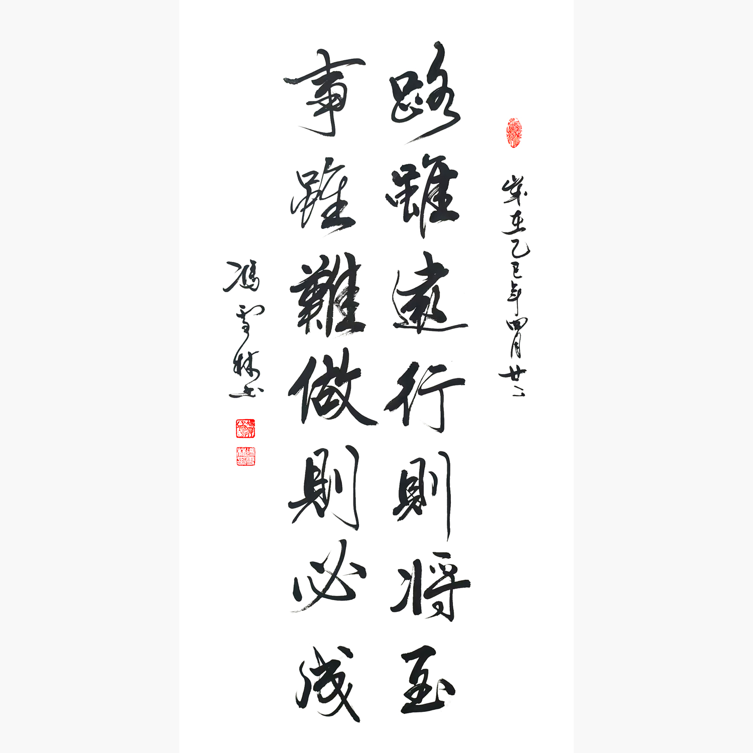 書法內容:路雖遠行則將至,事雖難做則必成。