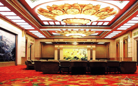 人民大會堂國家接待廳(金色大廳)是北京人民大會堂三層中央大廳,黨和國家領(lǐng)導(dǎo)人舉行國家最高規(guī)格新聞發(fā)布會、接見外國政要和各國大使遞交國書的重要場所,被稱為"人民大會堂第一廳"。從1993年起,全國"兩會"期間總理記者招待會常態(tài)化、制度化,通常安排在"金色大廳"舉行。2010年全國"兩會"期間,由于報(bào)名參訪的記者人數(shù)眾多,中國政協(xié)新聞發(fā)布會也首次移師至此,可以說,它是從一個(gè)側(cè)面見證了我國的發(fā)展進(jìn)程的中國"第一廳"。