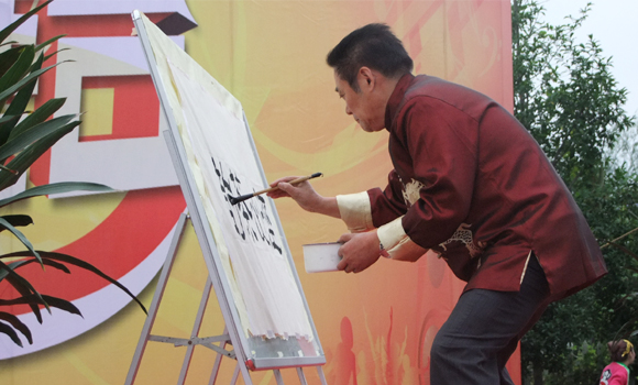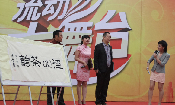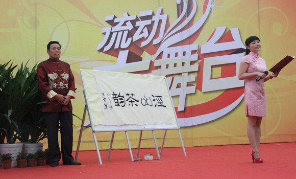 馮雪林老師在浙江衛視流動大舞臺活動現場書法表演