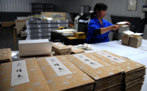 在印刷廠趕制車間,我們見到了正在印刷的請柬,為防止意外,每一本請柬都需要備份多份,并反復推敲每一個環節的制作,不斷修改。