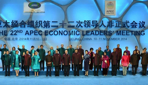 出席亞太經合組織第二十二次領導人非正式會議的各成員經濟體領導人、代表及配偶